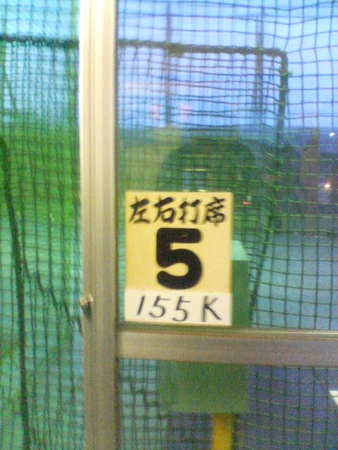 入り口側の右側のバッセンの5番「155K」の打席(アーム式)が最速