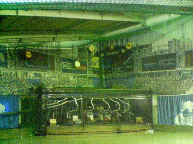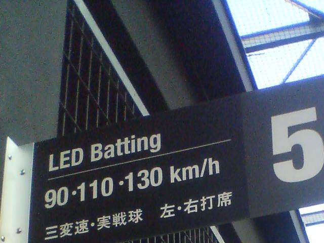アミューズメント施設「ラウンドワン」の屋上スポッチャコーナー内にあるバッティングセンターでマシンはLEDバーチャル
