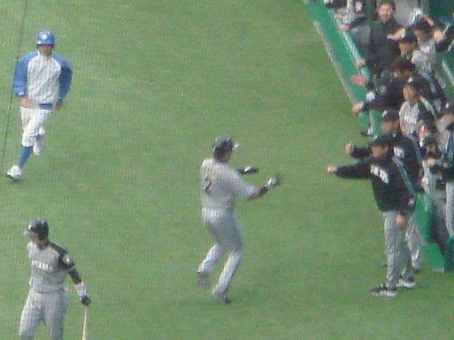 4回表、シーボルがレフトスタンドにソロホームランを打ち込みカープが1点を返す