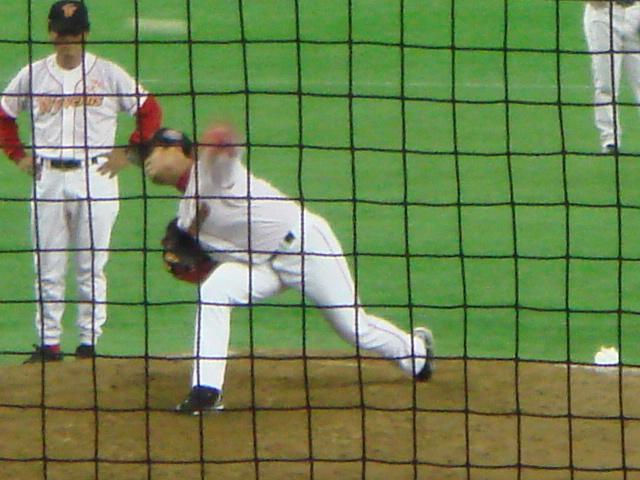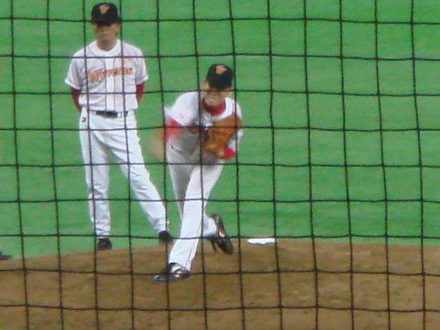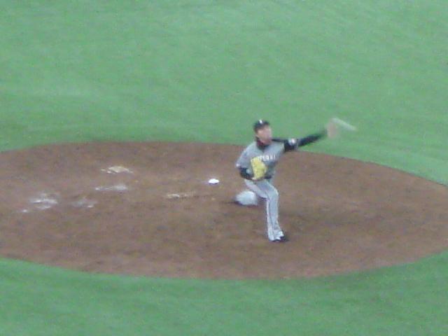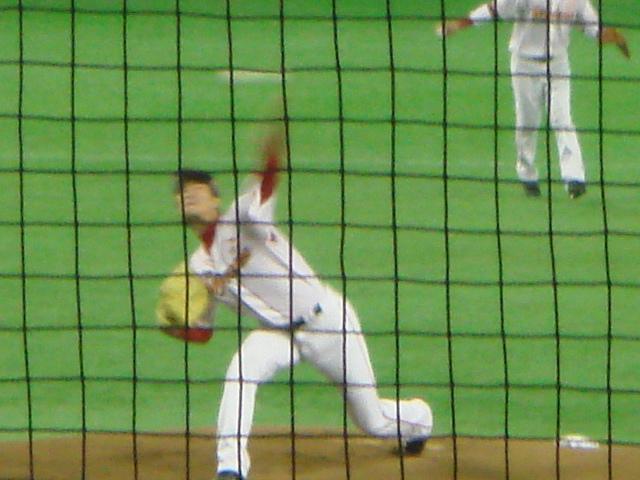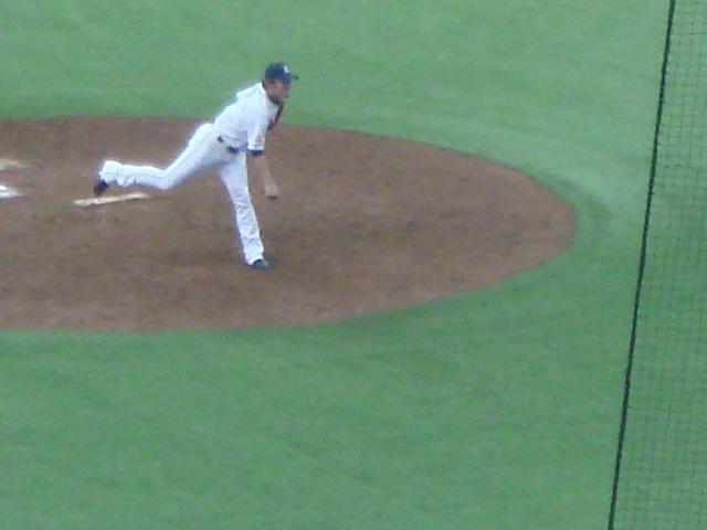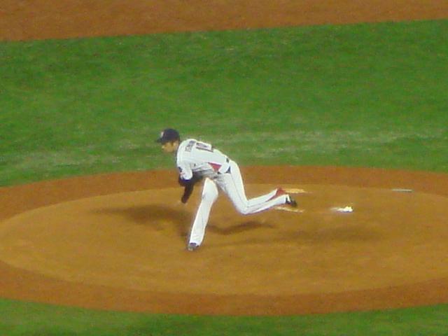 ファイターズはこの回途中で2番手の菊池に投手交代