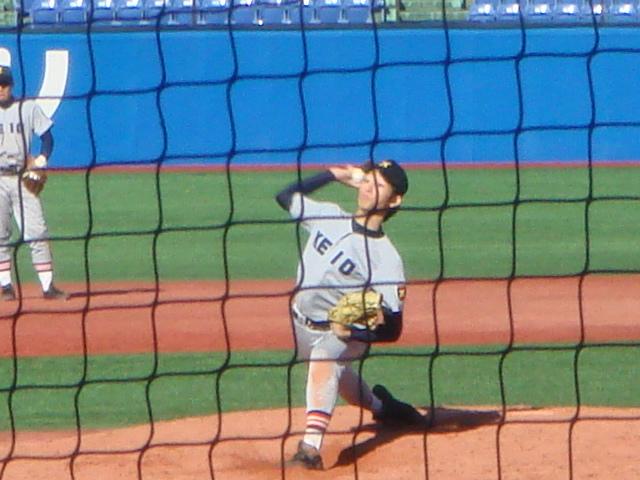 白村は8回、9回を無失点で抑えこみ、慶應8-6天理で試合終了