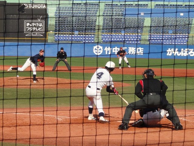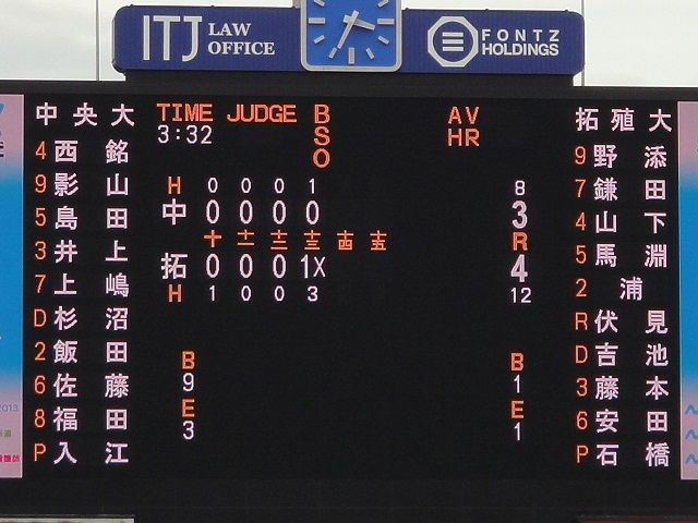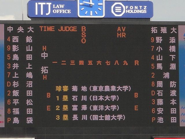 安田の内野ゴロの間に拓殖大が1点返す