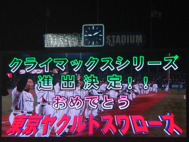 スワローズが勝利し、セ・リーグ クライマックスシリーズ進出を決めました