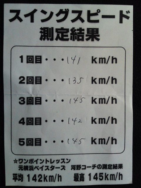 今回の測定最速値は145km/hでした