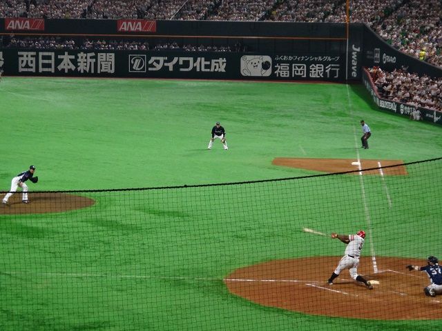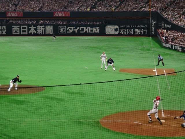 4回裏、デスパイネのソロホームランでホークスが同点に追いつく