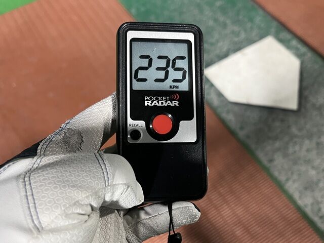 「220km/h」設定の「Pocket Radar」計測値は235KPHの数値が出ました